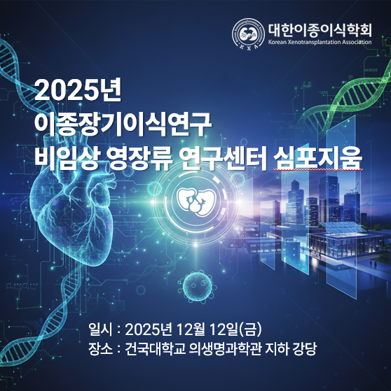 대한이종이식학회(Korean Xenotransplantation Association)는 이종이식 분야의 연구, 임상 응용, 윤리 및 규제 문제를 체계적으로 다루고,
